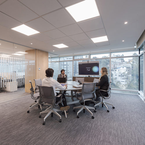 En los espacios de trabajo, los límites entre la tecnología, las instalaciones y el edificio empiezan a desdibujarse. Una red de sensores a lo largo del espacio físico permite recopilar información acerca del grado de ocupación, iluminación, temperatura, humedad y otros indicadores clave que pueden servir para mantener las condiciones operativas en niveles confortables y eficientes, mejorar la utilización del espacio y disminuir los costos de mantenimiento. El sistema evalúa la información que recibe y ajusta los parámetros en tiempo real.